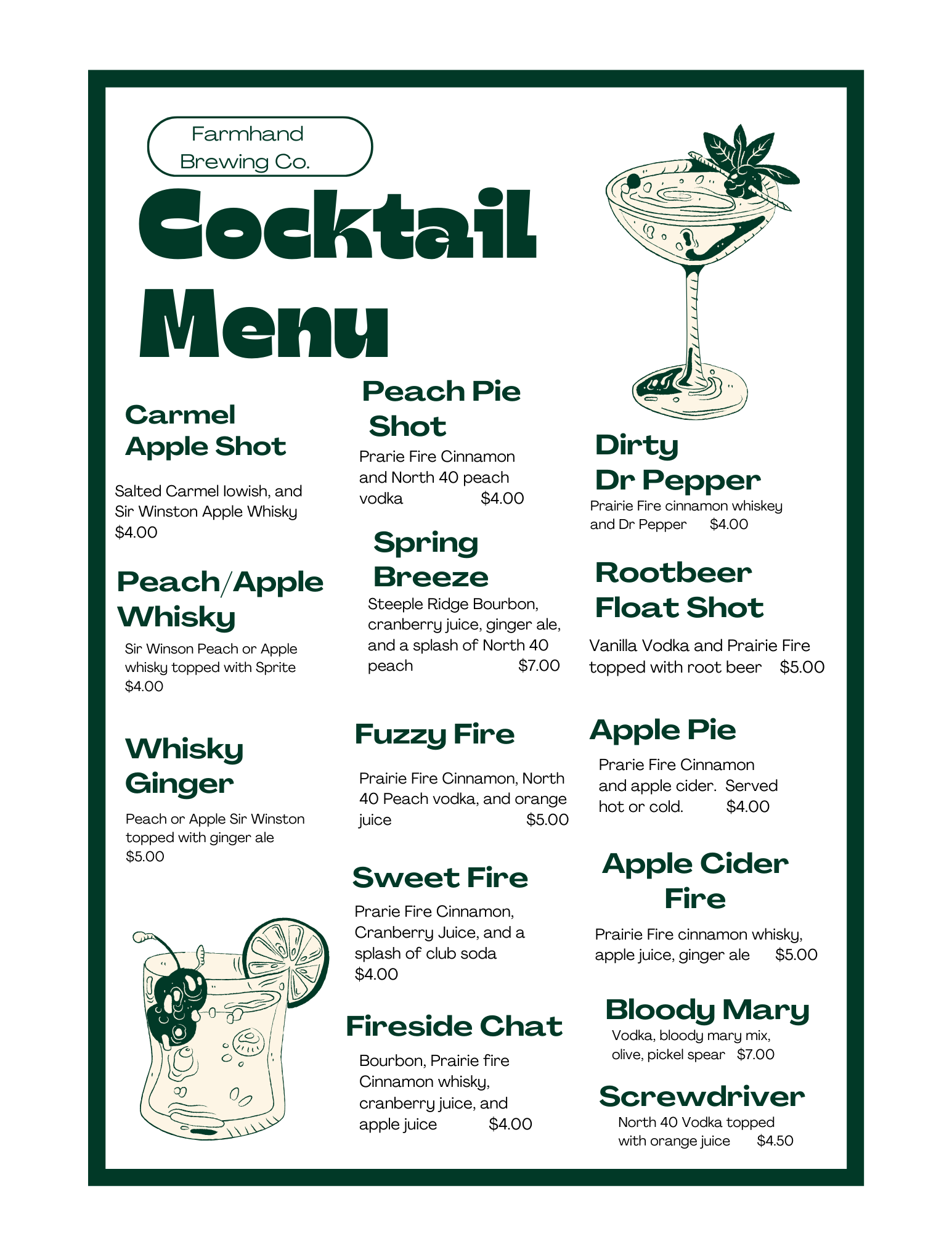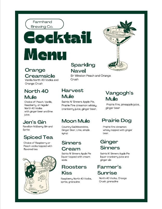 From classic to trendy, we love creating! Weekly drink and shot specials to bring you in the mood of the current season! Or stick with your regular - we have that, too!